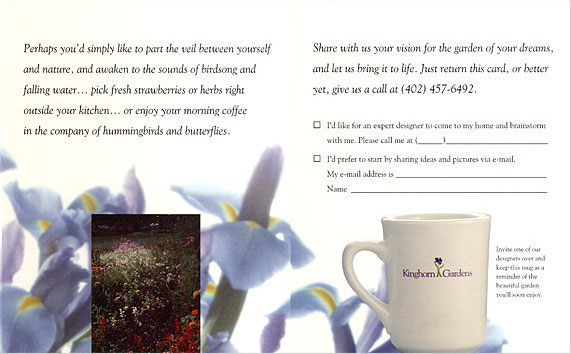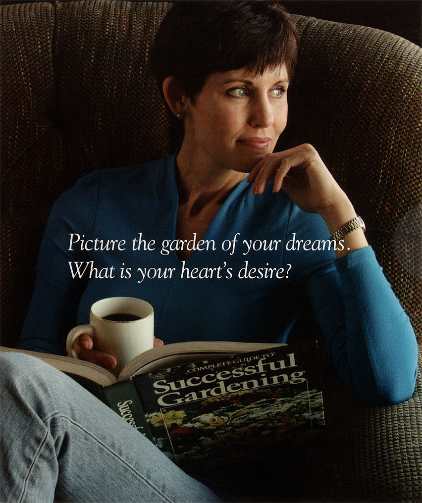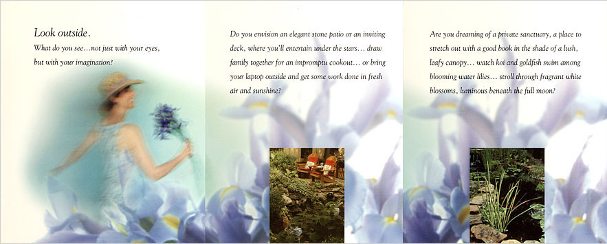 This direct mail piece invites the customer to imagine their dream garden not just as an aesthetic feature of their home, but as a functional extension of it that can elevate daily life.