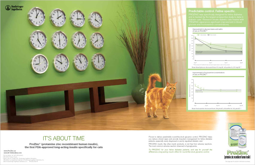 A long-acting insulin developed specifically for cats was a breakthrough in treating feline diabetes. Our launch campaign focused on time—both the longer time span of the insulin’s therapeutic action and the longer lifespan it could give to patients.